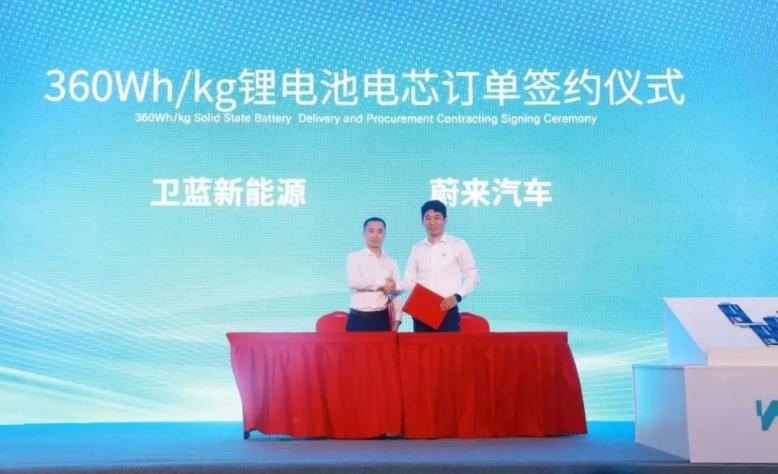 6月30日,衛藍新能源在浙江湖州舉行360Wh/kg鋰電池電芯交付簽約暨衛藍長三角研發中心揭牌儀式。衛藍新能源董事長俞會根在儀式中表示,衛藍開發兩年多的360Wh/kg半固態電池正式交付給蔚來,是全行業的一個里程碑。