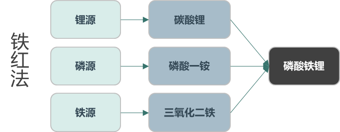根據選用鐵源的不同,固相法又細分為草酸亞鐵法、磷酸鐵法、鐵紅法等。