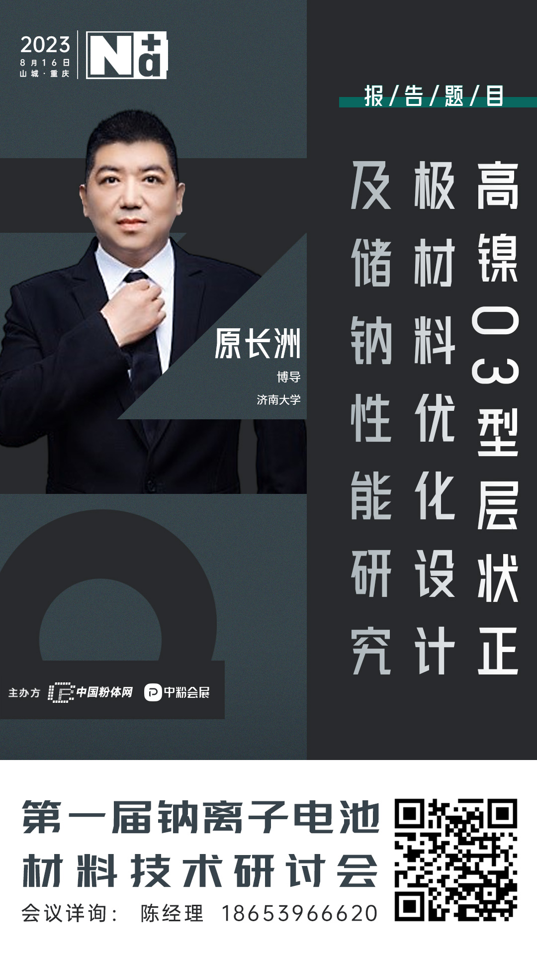 2023年8月,中國粉體網將在山城重慶舉辦“2023先進正極材料技術與產業高峰論壇暨第一屆鈉離子電池材料技術研討會”。我們有幸邀請到濟南大學的原長洲教授為我們帶來題為《高鎳O3型層狀正極材料優化設計及儲鈉性能研究》的報告。在本報告中,原教授針對鈉離子電池高鎳O3型層狀正極材料在深度脫鈉狀態下所產生的多重相變問題,從組分分布、微觀結構及表界面調控多方面入手,將核殼結構、離子體相摻雜及表面包覆有機結合,從而實現多層次結構/成分修飾,獲得結構穩定和電化學性能優異的鈉離子正極材料。并對廢棄高鎳O3型層狀正極材料進行了回收再利用研究。