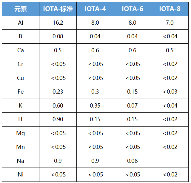 美國尤尼明IOTA系列高純石英相關(guān)指標(biāo)