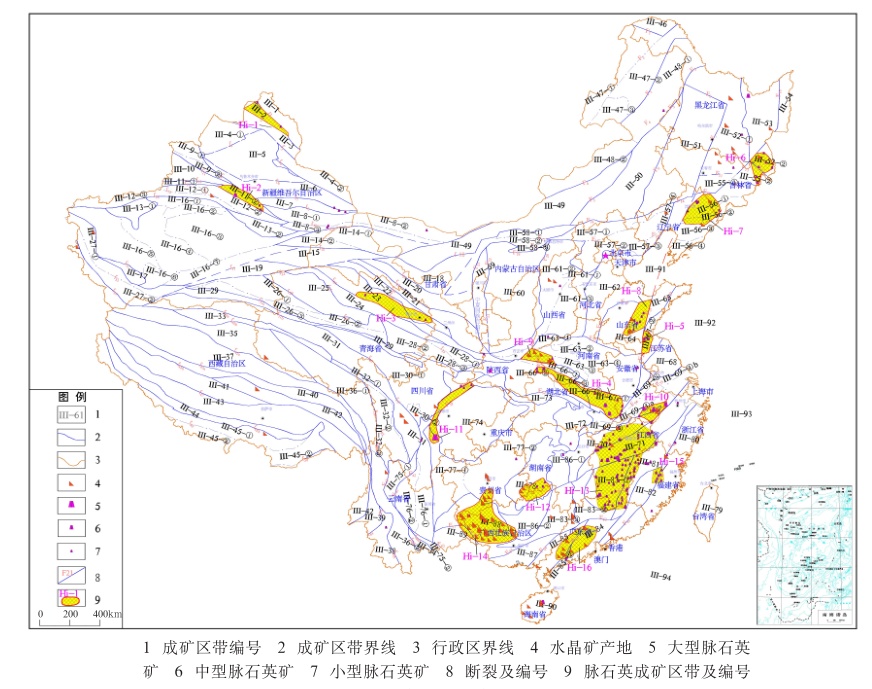 我國脈石英成礦區(qū)帶劃分圖