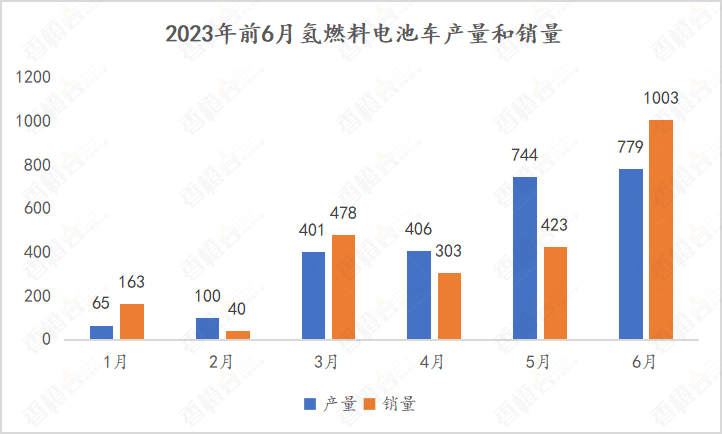 中國粉體網訊 2023年7月11日中國汽車工業協會公布燃料電池汽車產銷數據,據此計算,2023年6月全國燃料電池汽車產銷分別完成779輛和1003輛。