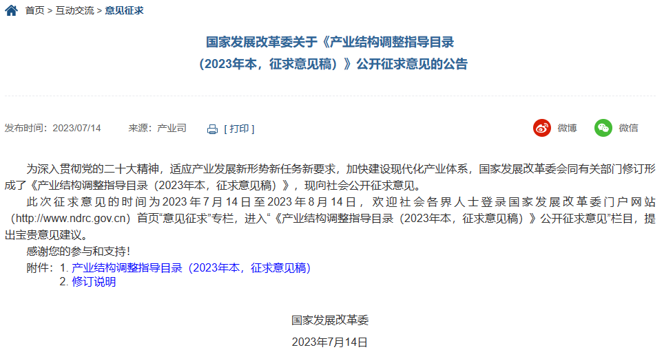 《產業結構調整指導目錄(2023年本,征求意見稿)》