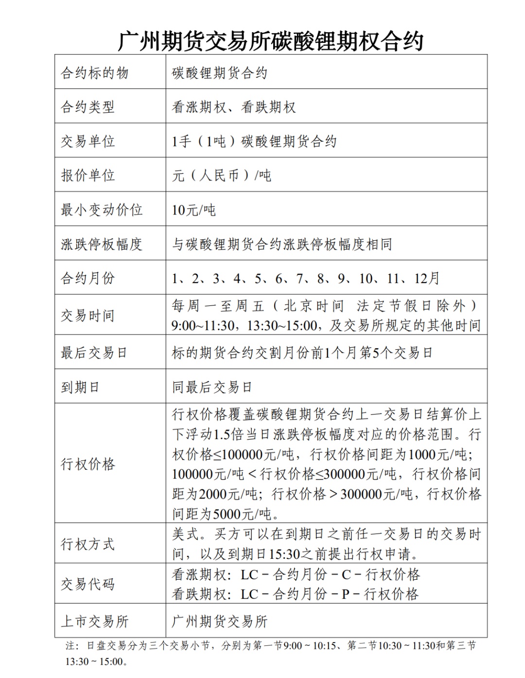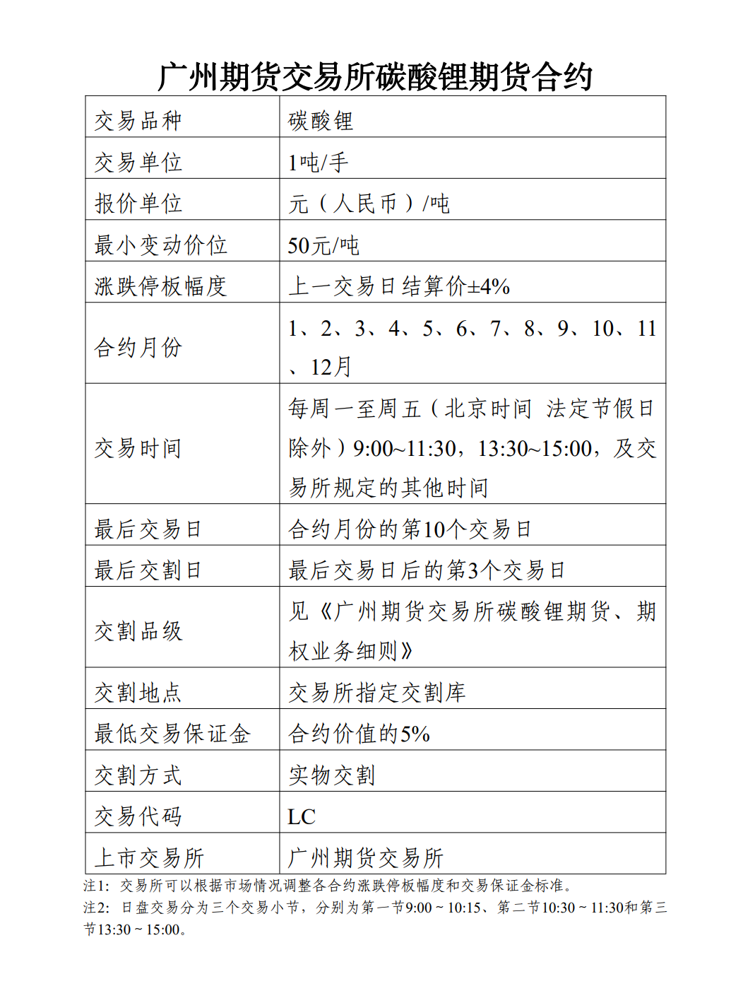 廣期所方面已經(jīng)發(fā)布碳酸鋰期貨和期權(quán)合約及相關(guān)業(yè)務(wù)細則,并明確了可交割商品、指定交割倉(廠)庫等。具體如下: