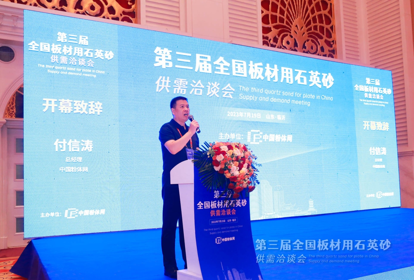 中國粉體網訊 2023年7月19日,由中國粉體網主辦的“第三屆全國板材用石英砂供需洽談會”在山東臨沂華盛江泉城大酒店隆重開幕!本屆洽談會旨在緩解供需矛盾、優(yōu)化資源配置,充分利用“全國石英大會”的平臺影響力、資源優(yōu)勢及組織經驗,一站式解決板材企業(yè)的采購需求和石英礦石、砂粉供應商的營銷需求。
