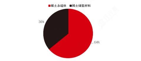 從新能源汽車行業的稀土消費情況來看,新能源汽車行業中主要涉及稀土永磁材料和稀土儲氫材料,分別占比64%和36%。