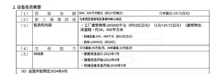 據悉,該項目資金額預計為6.946億人民幣(約合137億日元),新工廠基建設計于7月開始進行,設備入場于2024年5月進行,正式運營預計從2024年9月正式開始,建成達產后能實現DCB基板30萬張/月、AMB基板20萬張/月。