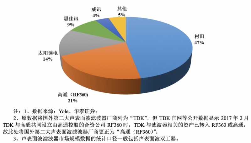 (2018年SAW濾波器全球主流廠商份額表現,圖源:產業鏈公司招股書)