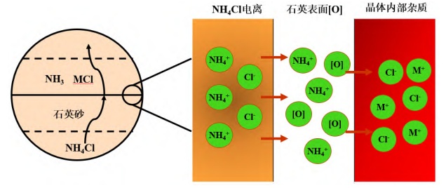 除了氫氟酸和熱磷酸以外,SiO2幾乎不溶于所有的酸,利用這一特點對石英砂進行酸浸處理可以進一步剔除石英砂中的Fe、Al、Ga、Mg、Na、K等金屬雜質離子,使其中雜質離子的含量降低至高純石英砂的標準。