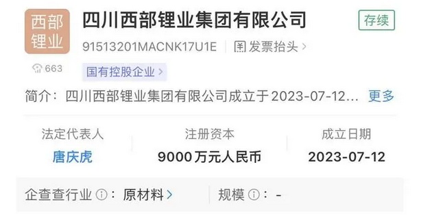 新華社消息,四川西部鋰業(yè)集團(tuán)23日正式在成都揭牌,公司注冊(cè)地就位于國(guó)內(nèi)鋰輝石的主產(chǎn)區(qū)四川省阿壩州。股權(quán)關(guān)系顯示,四川西部鋰業(yè)集團(tuán)的股東中,天府礦投持股比例為34%,川發(fā)龍蟒、四川路橋持股比例均為33%。