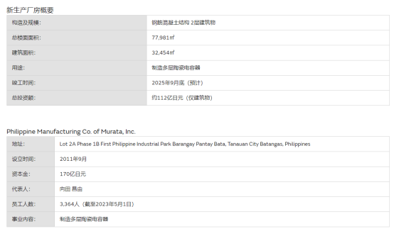 中國粉體網(wǎng)訊 8月1日,村田制作所宣布,旗下位于菲律賓的子公司「Philippine Manufacturing Co. of Murata, Inc.」已于2023年8月開始建設(shè)新生產(chǎn)廠房。此次建設(shè)新生產(chǎn)廠房的目的是構(gòu)建可應(yīng)對多層陶瓷電容器(MLCC)中長期需求增長的生產(chǎn)體制。