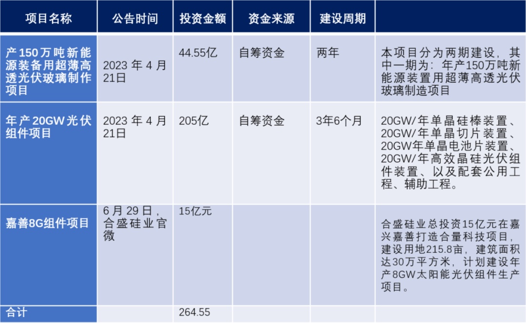 合盛說的比做的更多的光伏大項目,還有光伏玻璃和光伏組件一體化項目。