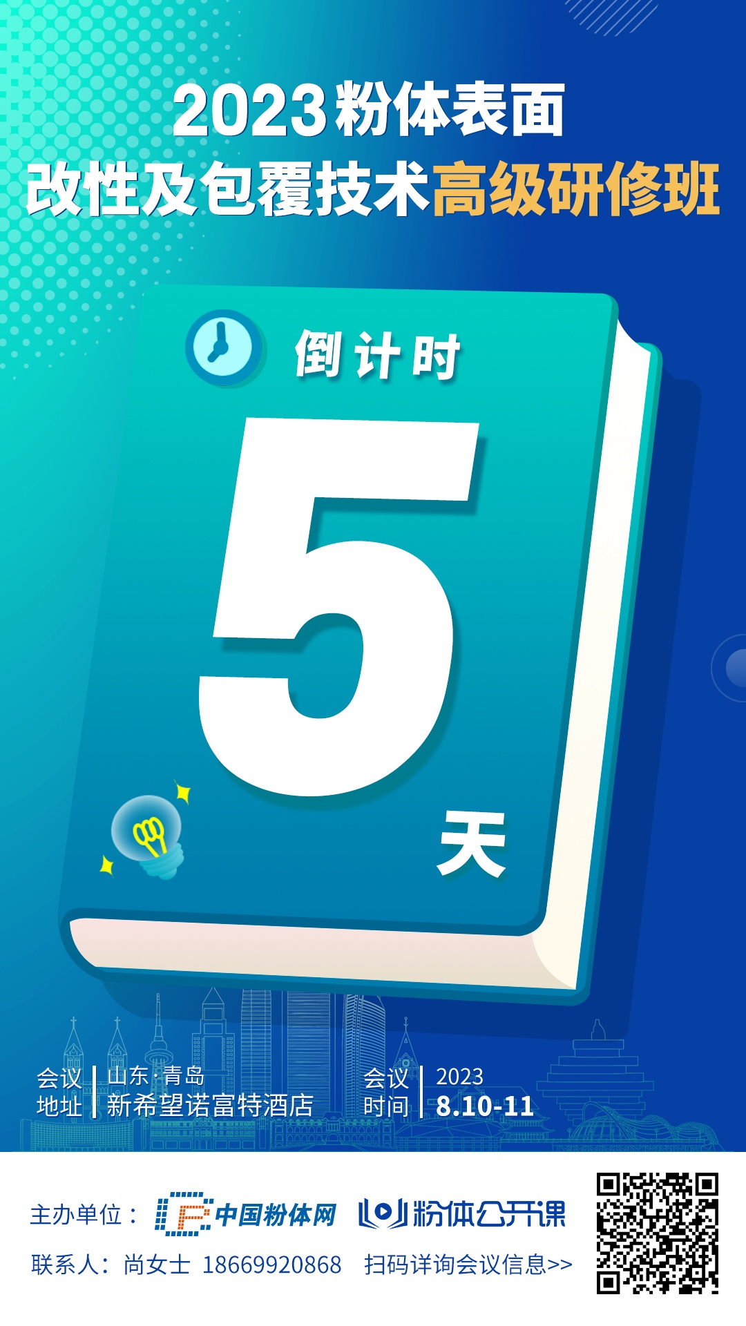 中國粉體網 由中國粉體網粉體公開課主辦的“2023粉體表面改性及包覆技術高級研修班”將于8月10號在山東青島舉辦,司馬化工(中國)有限公司邀您一同參加。