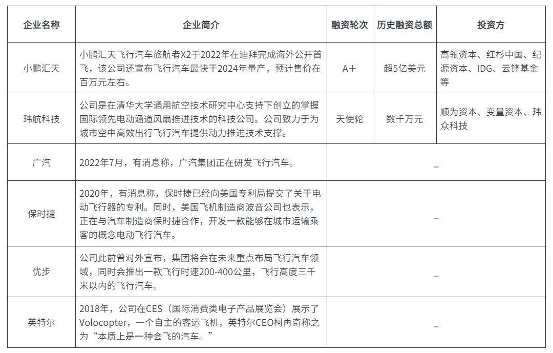 據不完全統計,目前通用、保時捷、小鵬、廣汽等國內外車企,英特爾、優步等科技公司都在布局飛行汽車。截至2021年,全球范圍內已有超過200家企業或機構在研發飛行汽車產品,約有420種型號。