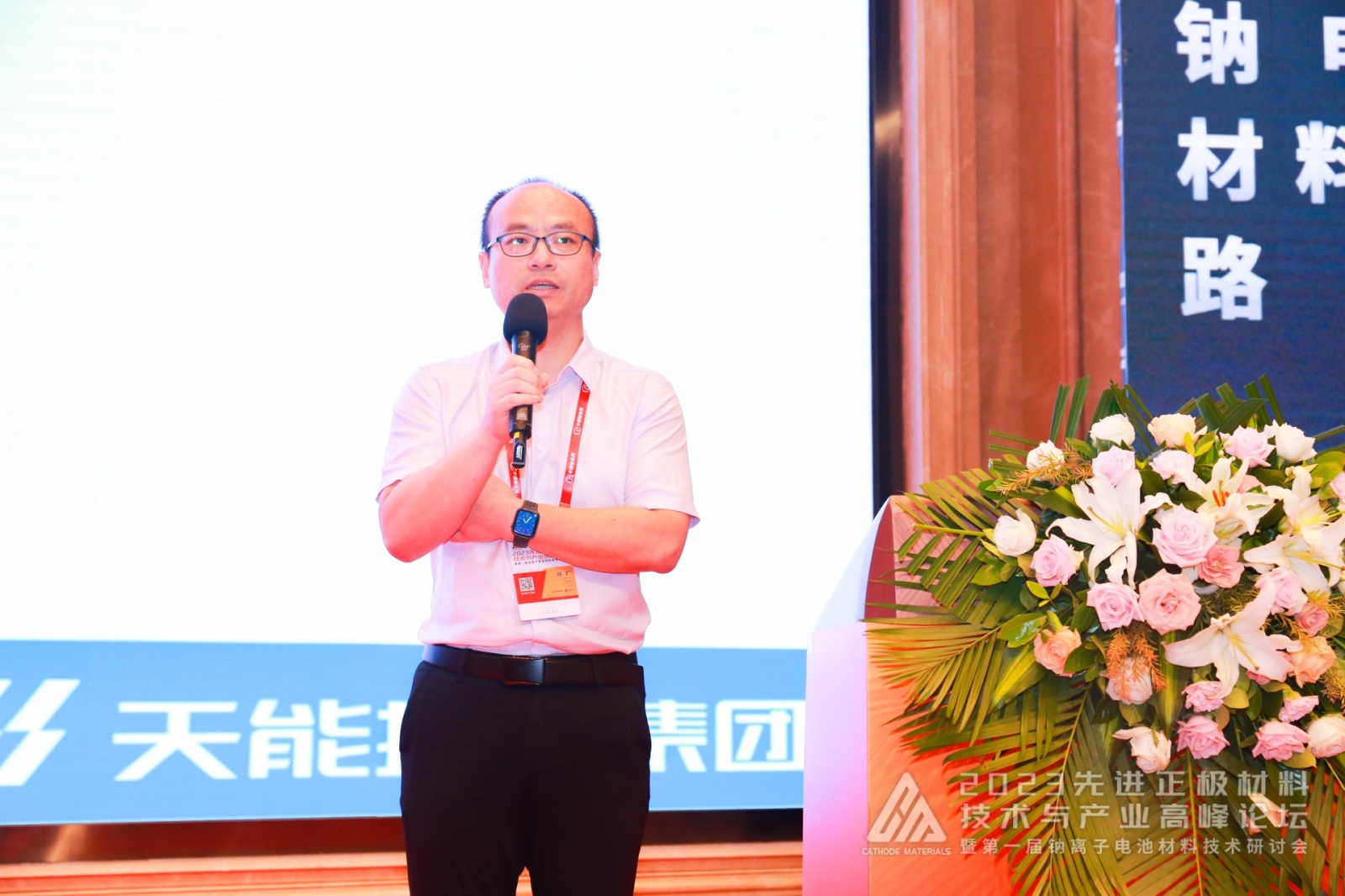 天能電池首席科學(xué)家何廣博士作《鈉電聚陰離子材料設(shè)計與技術(shù)路線》報告