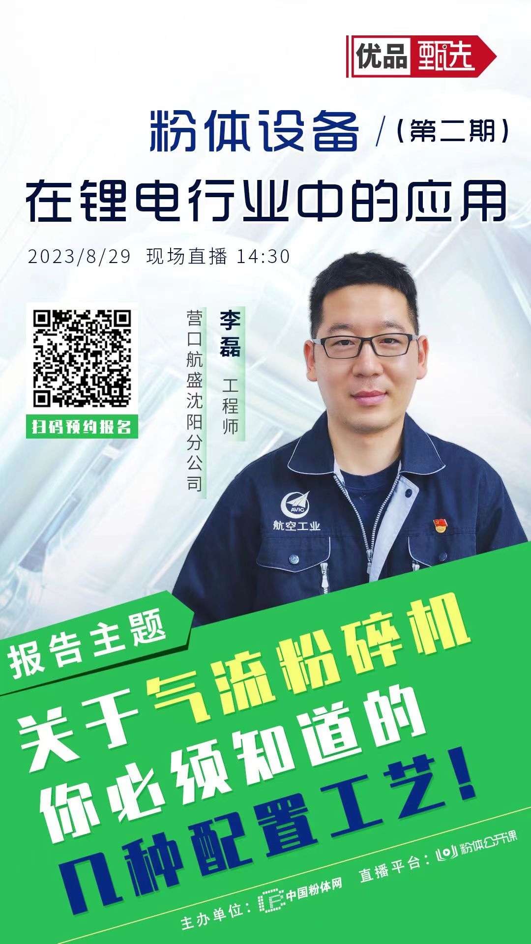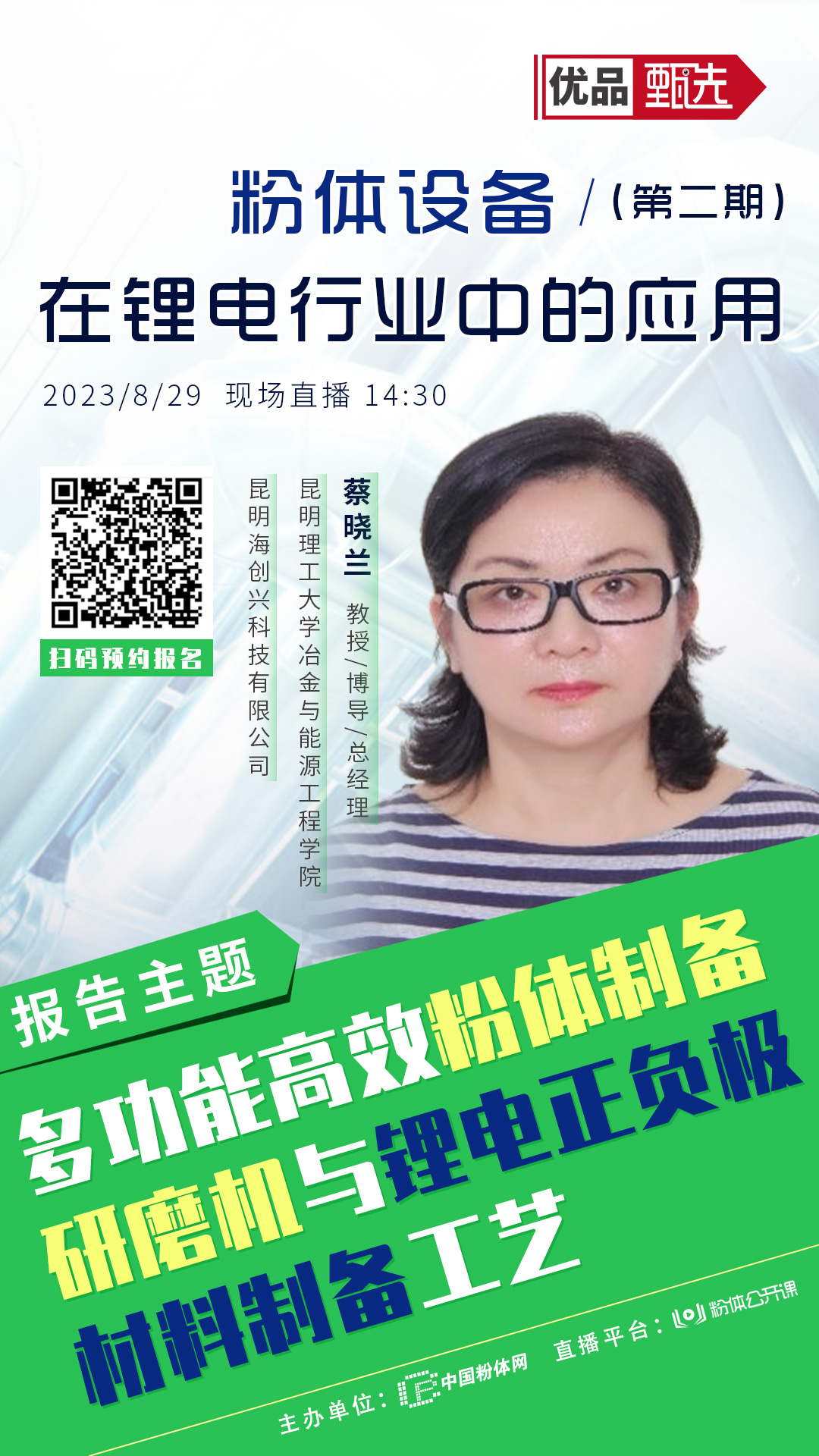 為更好地服務鋰電產業鏈企業,助力用戶便捷選型,快速采購理想的生產裝備!粉體公開課將于8月29號下午2點半開啟第2期優品甄選直播專欄--粉體設備在鋰電行業中的應用,邀請行業內優秀設備品牌商做設備展示,為用戶全面的了解產品優勢,使用方法和技巧等,多方位考察。