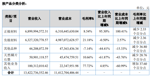 半年報顯示,貝特瑞主要從事鋰離子電池負極材料、正極材料及先進新材料的研發(fā)、生產(chǎn)和銷售,主要產(chǎn)品包括天然石墨負極材料、人造石墨負極材料、硅基負極材料及高鎳三元正極材料等鋰離子電池正負極材料。