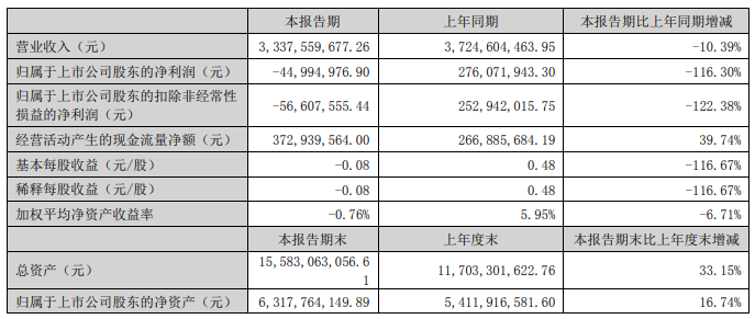 報告期內,公司實現營業收入 333,755.97 萬元,比上年同期減少 10.39%,其中海外業務營業收入占比 53%;歸屬于上市公司股東的凈利潤-4,499.50 萬元,比上年同期減少116.30%;歸屬于上市公司股東的扣除非經常損益的凈利潤-5,660.76 萬元,比上年同期下降 122.38%。