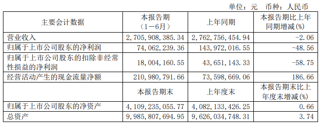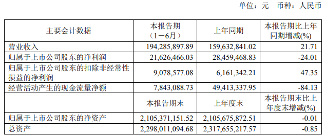 報告期內,公司 2023 年上半年度實現營業收入為 59,497.76 萬元,同比增長 28.81%;歸屬于上市公司股東的凈利潤 7,942.24萬元,同比減少 3.45%,歸屬于上市公司股東扣除非經常性損益的凈利潤為 7,712.75 萬元,同比增長 1.33%。