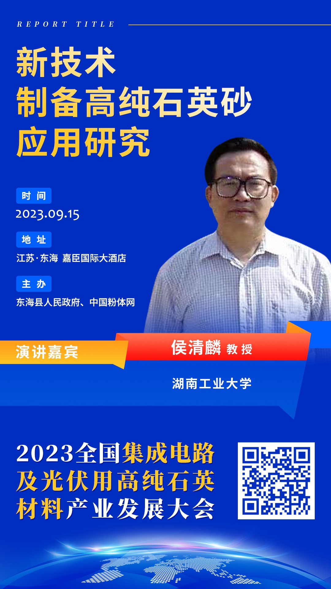 2023年9月15日,中國粉體網聯合東海縣人民政府將于東海縣嘉臣國際大酒店舉辦“2023全國集成電路及光伏用高純石英材料產業發展大會”,屆時,來自湖南工業大學的侯清麟教授將作《新技術制備高純石英砂應用研究》報告,詳細講述高純石英砂新工藝的研究及應用。
