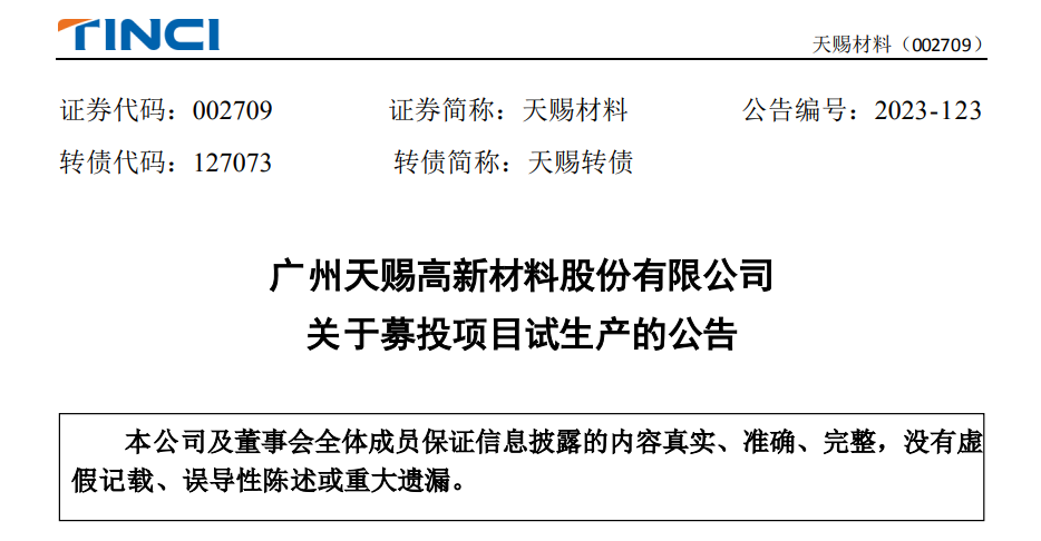 8月22日,天賜材料發布公告,年產15.2萬噸鋰電新材料項目為公司2022年公開發行可轉債募投項目,其中,年產15萬噸液體六氟磷酸鋰產線裝置已于7月底完成安裝并調試成功,并于近日開始進料試生產,目前已連續產出三批合格產品,產品質量均符合公司電解液生產要求。據了解,年產15.2萬噸鋰電新材料項目建設內容主要包括15萬噸/年液體六氟磷酸鋰、0.2萬噸/年二氟磷酸鋰裝置。