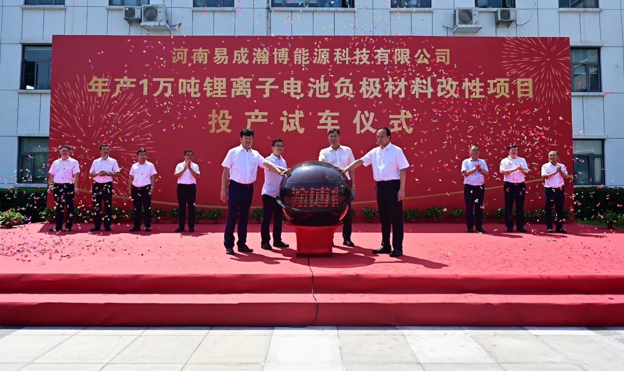 中國粉體網訊 8月31日上午,易成新能公司下屬子公司河南易成瀚博能源科技公司年產1萬噸鋰離子電池負極材料改性項目投產試車儀式在河南易成瀚博能源科技公司舉行。集團副總經理王安樂、開封市禹王臺區區長張統出席儀式并共同按下啟動球。集團相關部門負責人參加儀式。