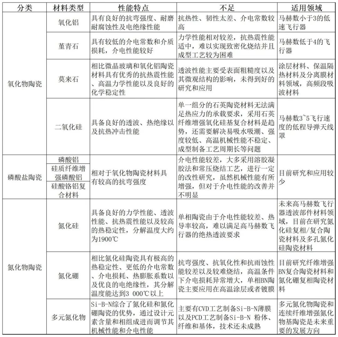 國內(nèi)在3D打印材料方面已開展了大量的研究,但主要集中在氧化鋁 (Al2O3)、氧化鋯(ZrO2)、硅酸鈣(CaSiO3)、碳化硅(SiC)等非透波陶瓷材料。對于高溫透波陶瓷材料的研究主要集中在氧化物陶瓷、磷酸鹽陶瓷和氮化物陶瓷三個方面,但對于3D打印透波陶瓷材料的研究就很少。