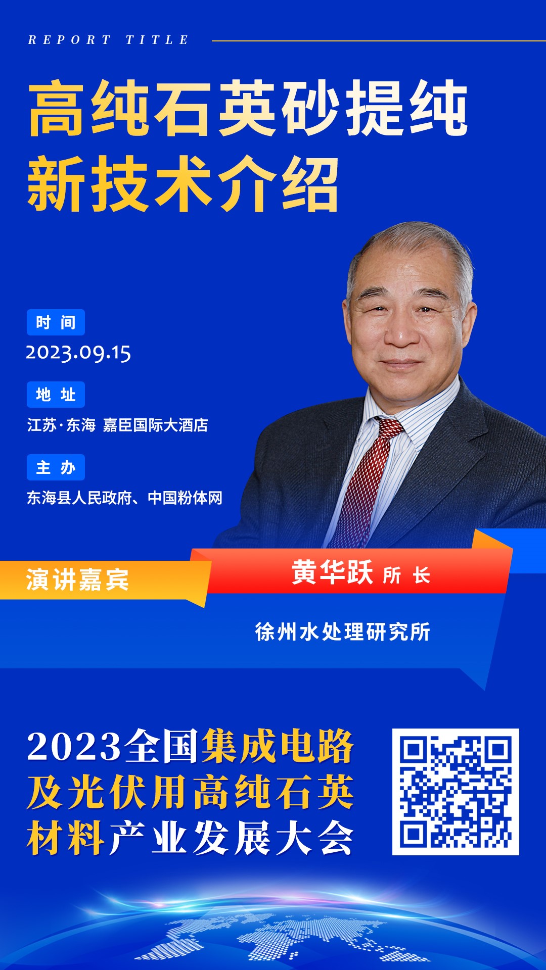 2023年9月15日,中國粉體網聯合東海縣人民政府將于東海縣嘉臣國際大酒店舉辦“2023全國集成電路及光伏用高純石英材料產業發展大會”。來自徐州水處理研究所的黃華躍所長將作《高純石英砂提純新技術介紹》報告,屆時,黃所長將對高純砂行業健康發展提出建議,并著重推薦其研究所多年研究的三項高純砂提純新技術。