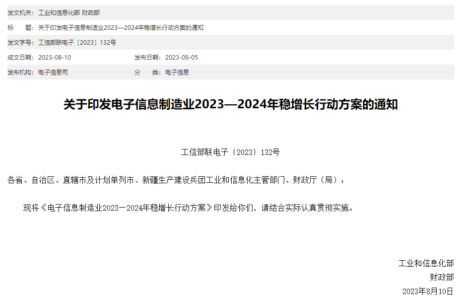 電子信息制造業(yè)2023—2024年穩(wěn)增長(zhǎng)行動(dòng)方案