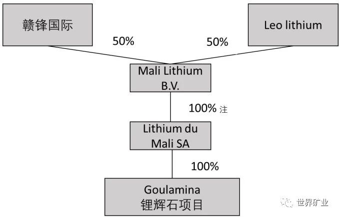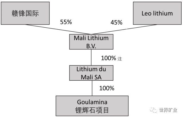 注:根據馬里礦業相關法律,馬里政府將可能獲得 Lithium du Mali SA 公司層面 10-20%股份,截止目前馬里政府尚未行權。