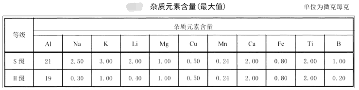 高純石英玻璃晶圓中Al、Fe、Ca、Mg、Ti、Cu、Co、Mn、Ni、Li、Na、K、B等13種雜質(zhì)元素含量的質(zhì)量分?jǐn)?shù)總和應(yīng)不大于2.0μg/g。其中Li、Na、K3種雜質(zhì)元素含量的質(zhì)量分?jǐn)?shù)之和應(yīng)不大于1.0μg/g,單一雜質(zhì)元素含量的質(zhì)量分?jǐn)?shù)應(yīng)不大于0.5μg/g。