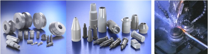 氮化硅陶瓷氣壓燒結(jié)技術(shù)的發(fā)展,使得制備外形復(fù)雜的氮化硅陶瓷材料成為可能,極大地拓展了氮化硅材料的使用場景,如現(xiàn)代工業(yè)中必不可少的焊接領(lǐng)域。下圖為德國賽朗泰克公司制備出的氮化硅陶瓷焊接銷,焊接滾輪使用壽命遠(yuǎn)高于傳統(tǒng)材料,并在投影焊接中實(shí)現(xiàn)了極高的精確度。而且氮化硅焊接部件在使用過程中更加耐磨和不易黏結(jié),具有更長的使用壽命和更低的使用成本。