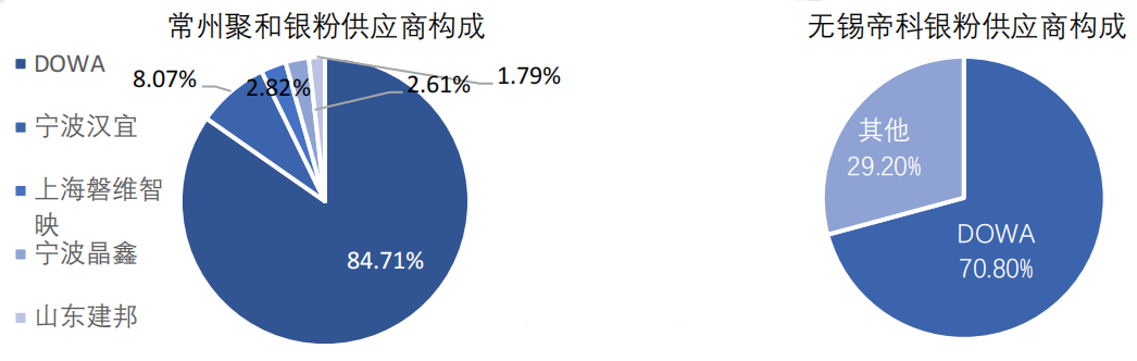 雖然在行業外人看起來,銀粉僅僅是將金屬銀打碎成粉而已,但實際上,要做到將貴金屬粉末化至符合光伏等需求的電子級顆粒,是一個高技術壁壘門檻。我國確實也有企業(如:蘇州斯美特和寧波晶鑫等)從事銀粉生產,但無論在產能、顆粒直徑和產品穩定性上,均與國際主流廠商有很大的差距。由于光伏電池企業對其所用的銀粉產品有很嚴格的穩定性要求,所以我國到目前為止,銀漿生產中所用到的超細銀粉基本上來自于進口,并且主要進口供應商就是占據國際銀粉市場半壁江山的日本DOWA。