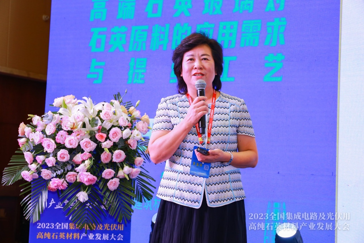 中國建筑材料科學研究總院石英與特種玻璃研究院教授級高工王玉芬作《高端石英玻璃對石英原料的應用需求與提純工藝》報告