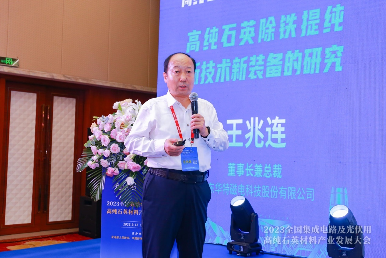 山東華特磁電科技股份有限公司董事長兼總裁王兆連作《高純石英除鐵提純新技術新裝備的研究》報告