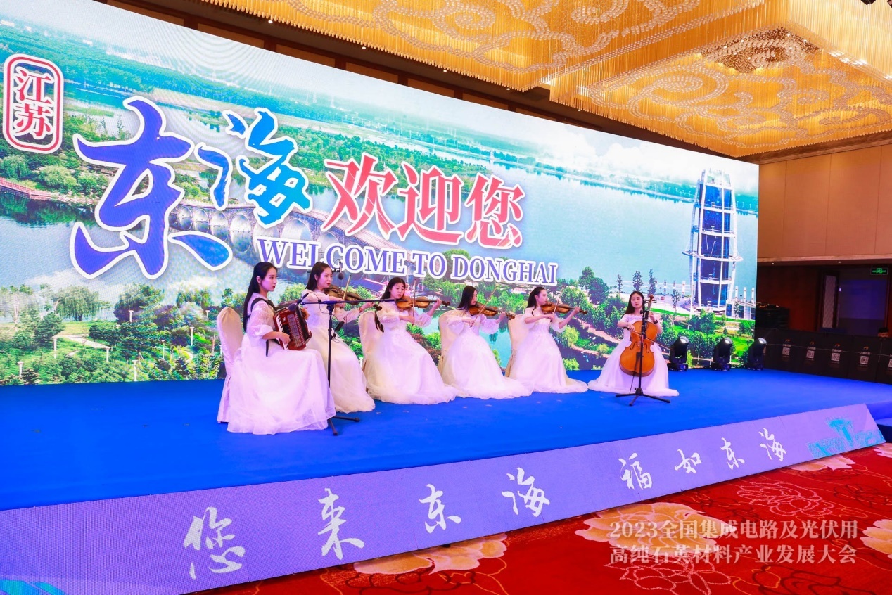 9月14日晚,東海縣政府舉辦了“產業中國 大美晶都”接待晚宴。晚宴主要分為兩部分。第一部分為會議環節,由東海縣縣委副書記、縣長張其兵主持,連云港市副市長、縣委書記宋波致辭,薛劍副縣長推介東海;企業供銷合同集中簽約。第二部分是餐敘環節,主辦方組織了現場互動活動和精彩的文藝表演,為高純石英材料產業的發展送上祝福。赴宴人員相互交流,各抒己見,宴會現場歡歌笑語!