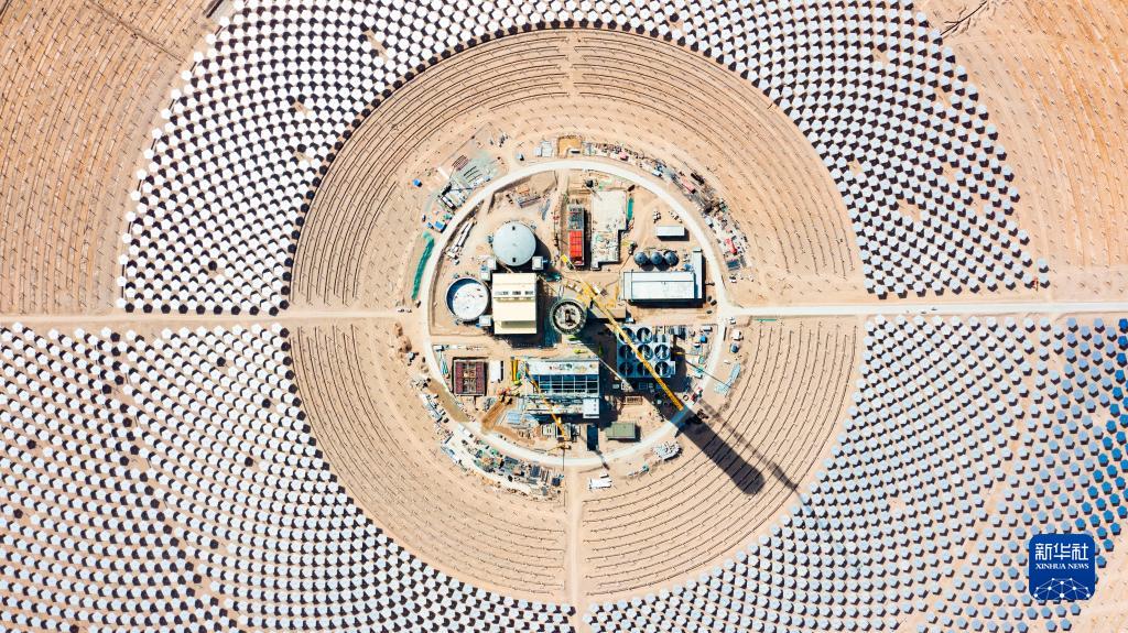 這是試點(diǎn)項(xiàng)目吸熱塔及鏡場區(qū)(9月19日攝,無人機(jī)照片)。