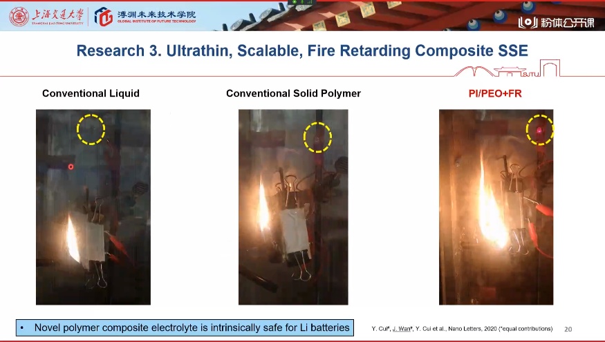 通過新型固態電解質材料、結構、和界面的研究,展示厚度可低至5微米,且具有熱穩定性、不易燃性和高機械強度,抵抗鋰枝晶刺穿效果好。