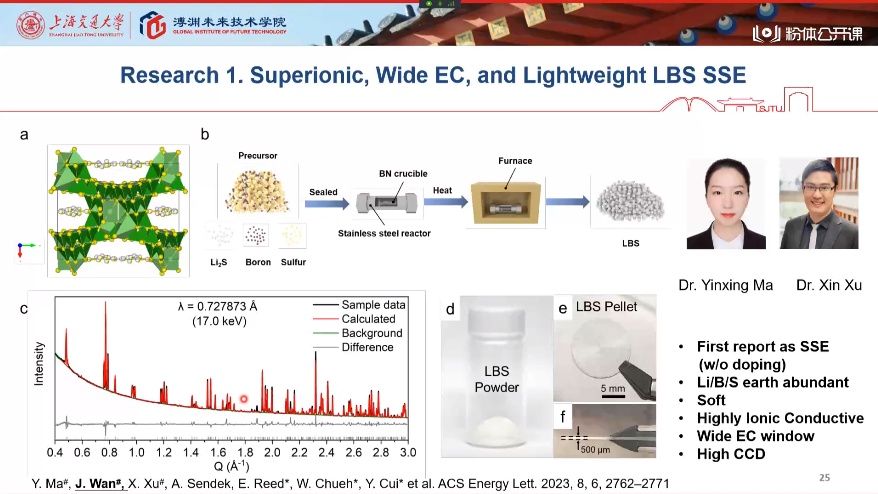 萬佳雨副教授接著介紹了高性能電池用新型固態電解質的設計與合成。