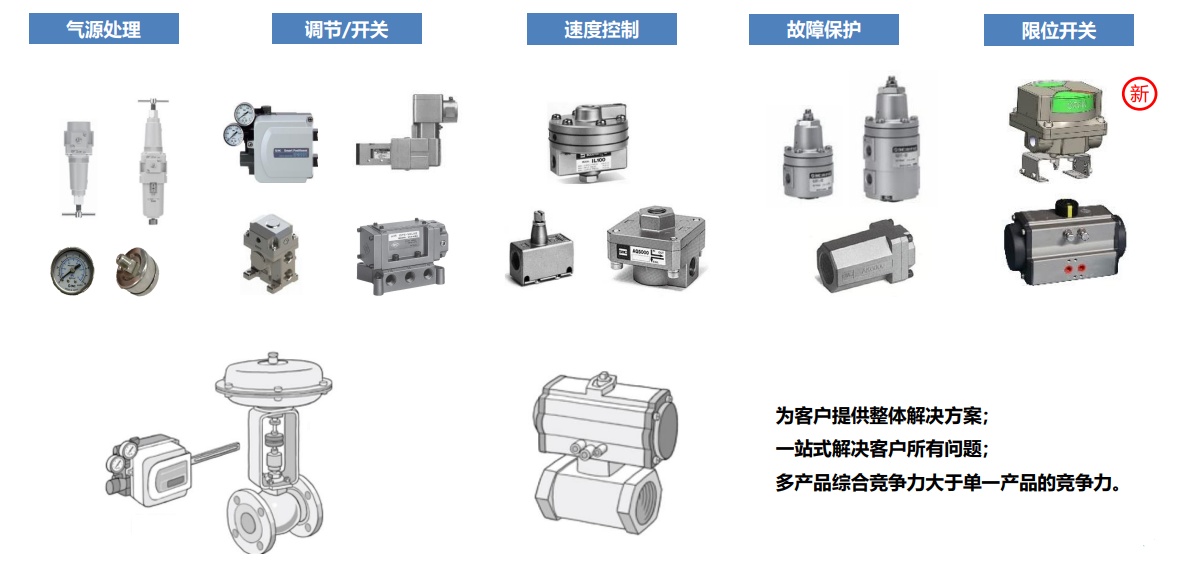 SMC中國營業致力于通過覆蓋全國市場的營業據點和專業服務團隊、充足的在庫和強大的物流系統打造短交貨期供給保證體制,通過氣動控制產品和技術,SMC為工業自動化和智能制造領域各行業提供服務。