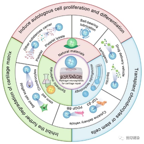 水凝膠微球在軟骨修復和再生中的應用示意圖