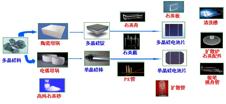 一方面,石英拉管、石英砣和石英坩堝等在高純石英砂熔制上有所不同,對高純石英砂原料的要求則不一。