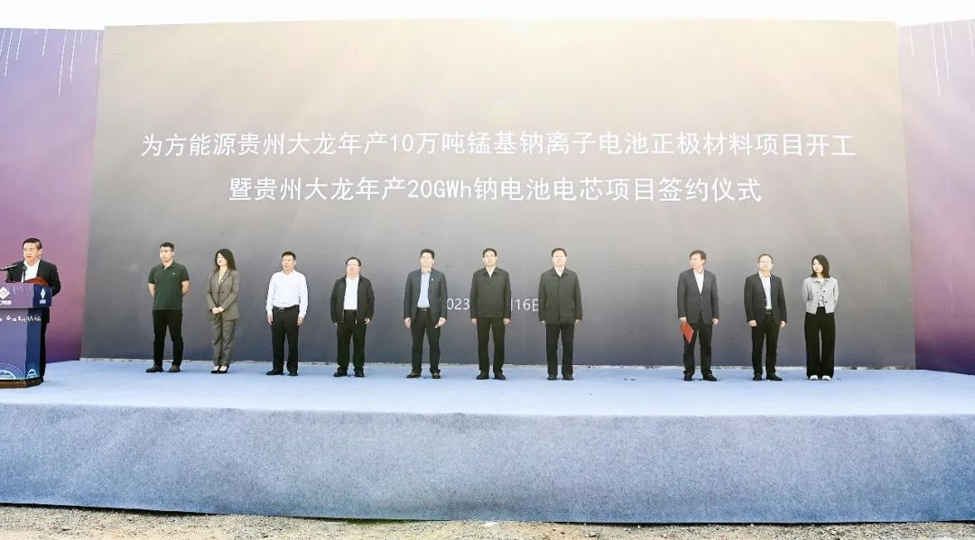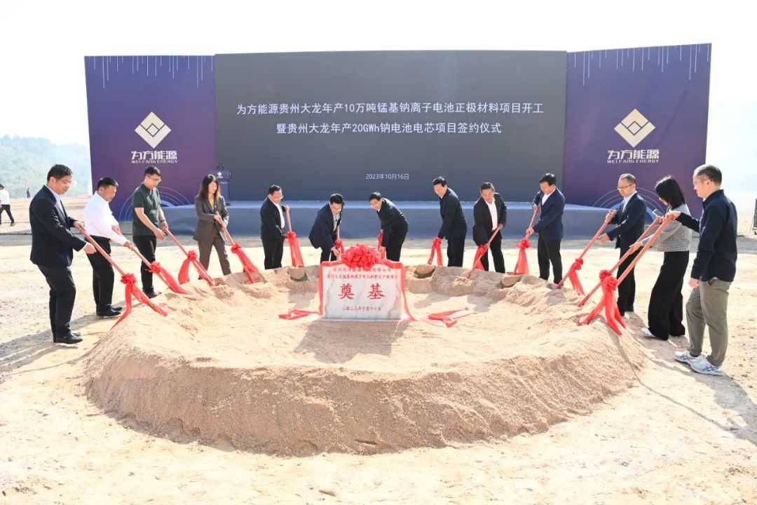 中國粉體網訊 10月16日,為方能源貴州大龍年產10萬噸錳基鈉離子電池正極材料項目開工暨貴州大龍年產20GWh鈉電池電芯項目簽約儀式舉行。