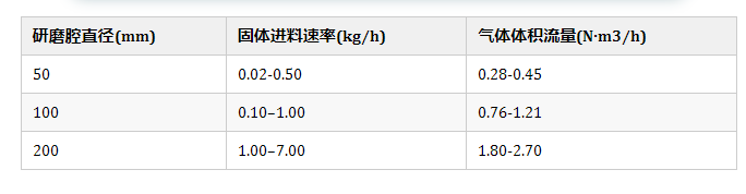 操作條件:固體進料速率、喂料量、粉碎壓力、進料壓力和待粉碎的物料。