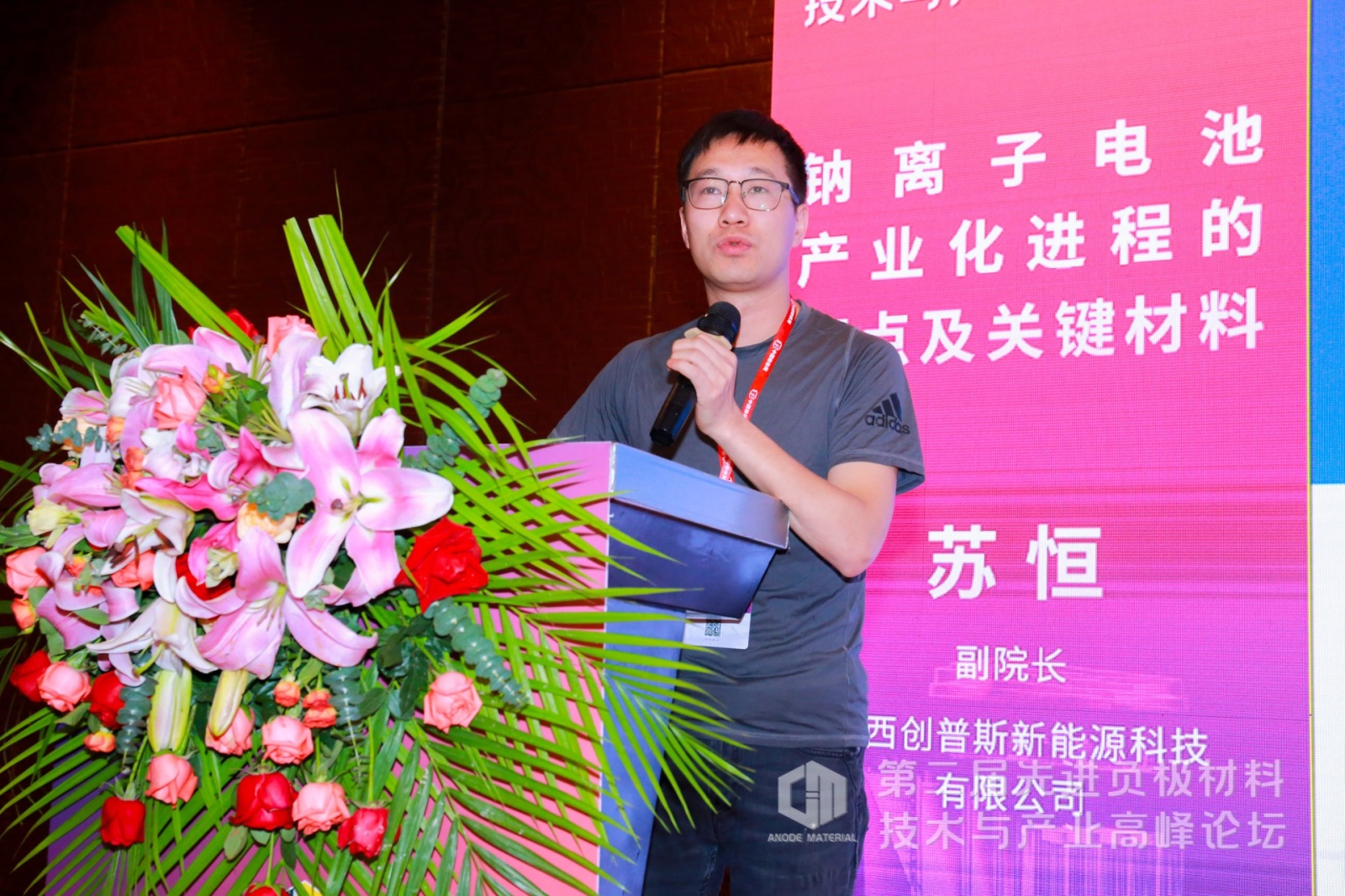 陜西創(chuàng)普斯新能源科技有限公司蘇恒副院長作《鈉離子電池產(chǎn)業(yè)化進程的痛點及關(guān)鍵材料》報告