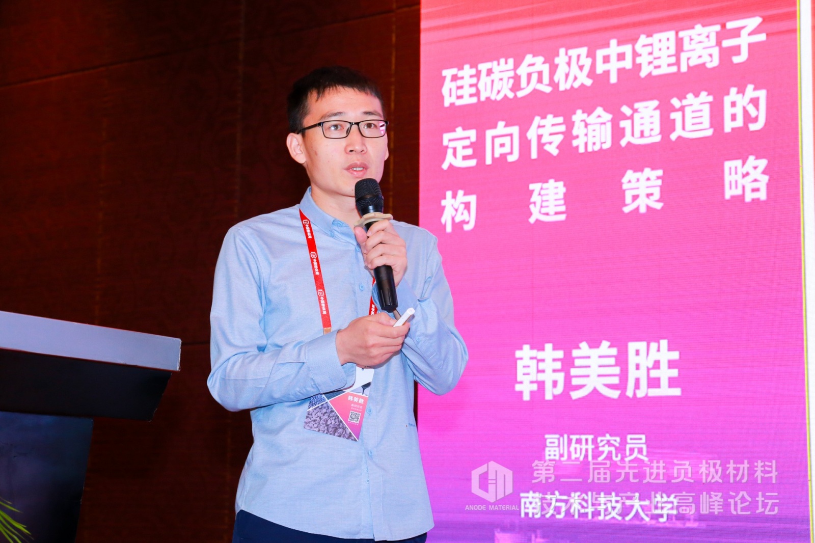 南方科技大學(xué)韓美勝副研究員作《硅碳負極中鋰離子定向傳輸通道的構(gòu)建策略》報告