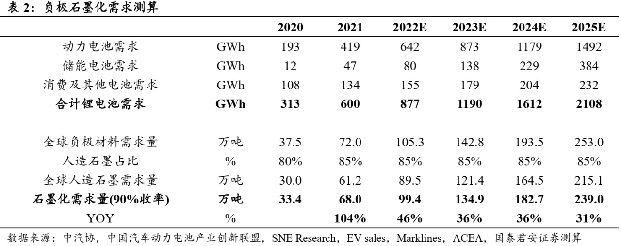 2.2 石墨化需求:人造石墨材料高增長拉動需求