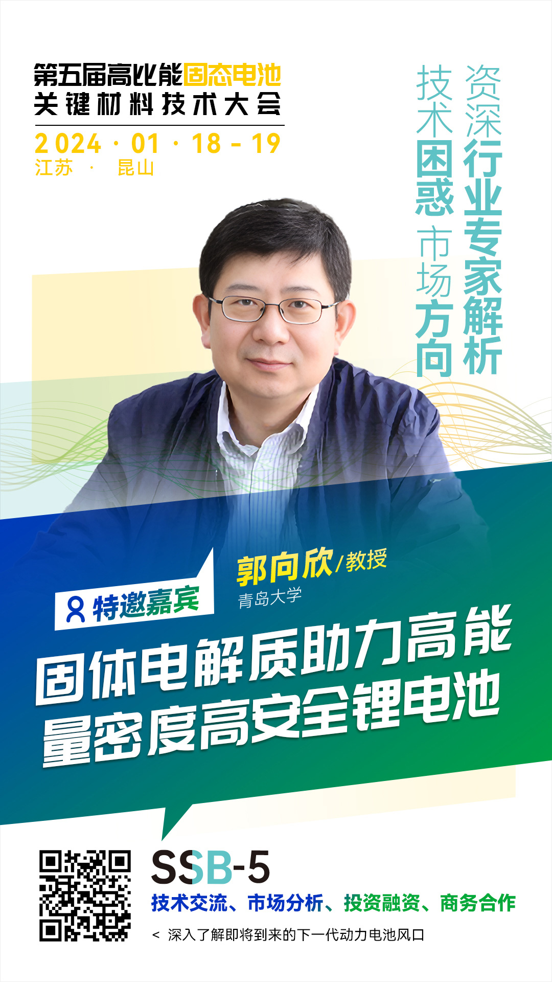 針對固態電池相關的技術、材料、市場及產業等方面的問題,中國粉體網將在昆山舉辦第五屆高比能固態電池關鍵材料技術大會。為致力于固態電池技術開發的企業,科研院校,以及電動車、儲能、特種應用等終端企業提供信息交流的平臺,開展產、學、研合作,共同推動行業發展。屆時,青島大學郭向欣教授將作題為《固體電解質助力高能量密度高安全鋰電池》的報告。