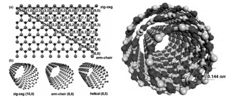 單壁BNNT的構造及構象(左);多壁BNNT的構造及構象(右)