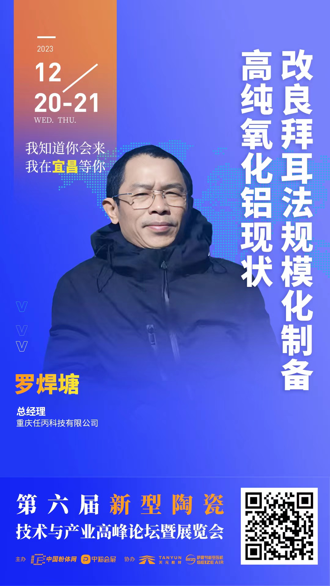 由此,中國粉體網(wǎng)將于2023年12月20-21日在湖北宜昌舉辦“第六屆新型陶瓷技術(shù)與產(chǎn)業(yè)高峰論壇”,屆時,重慶任丙科技有限公司總經(jīng)理羅焊塘將帶來題為《改良拜耳法規(guī)模化制備高純氧化鋁現(xiàn)狀》的報告。